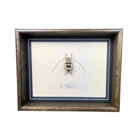 Part of the bespoke Les Couilles du Chien entomology collection. This stunning specimen mounted in our bespoke solid oak frames is set and mounted in our own workshop. Large variety of other specimens available.
