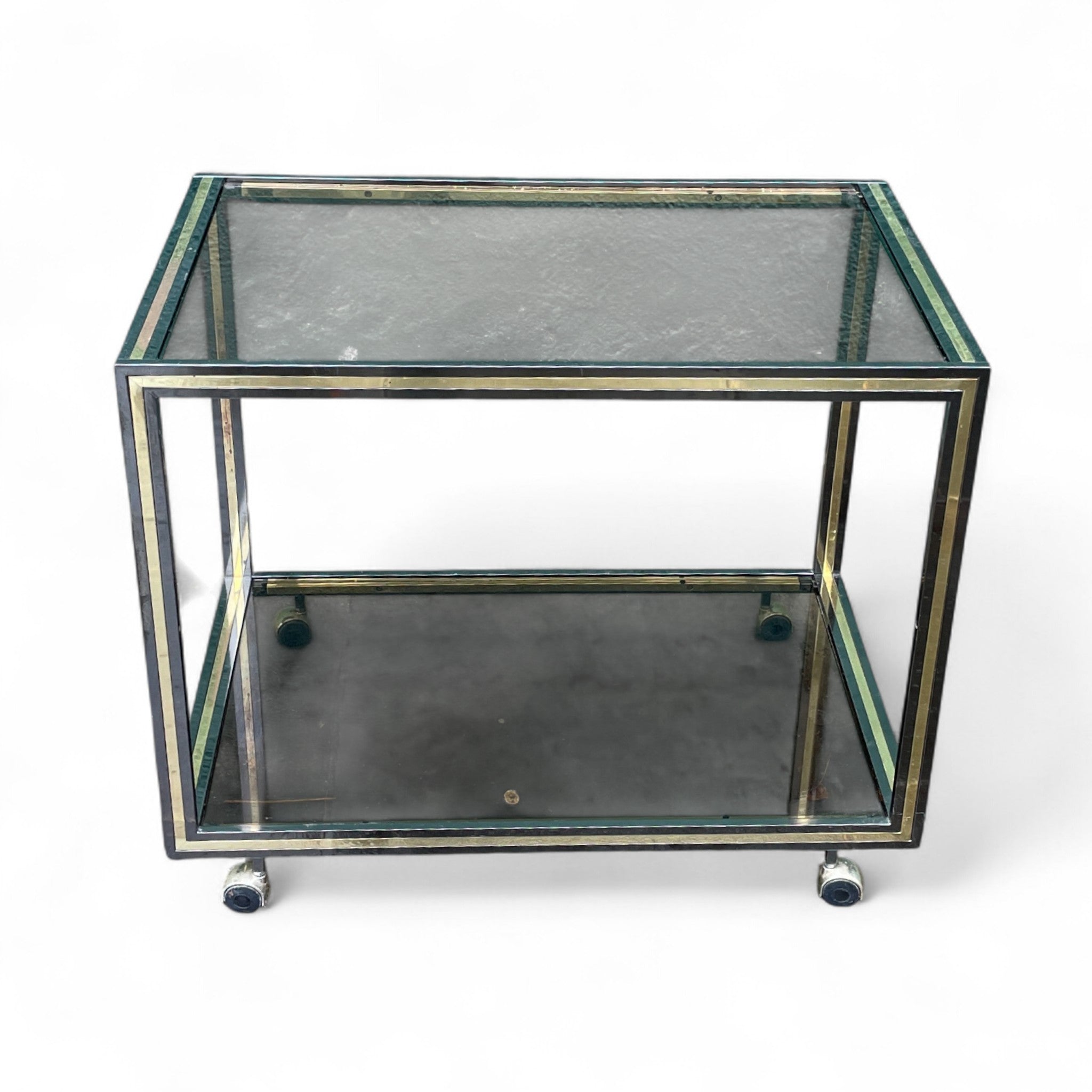 1970's Italian drinks trolley with brass and chrome detailing.