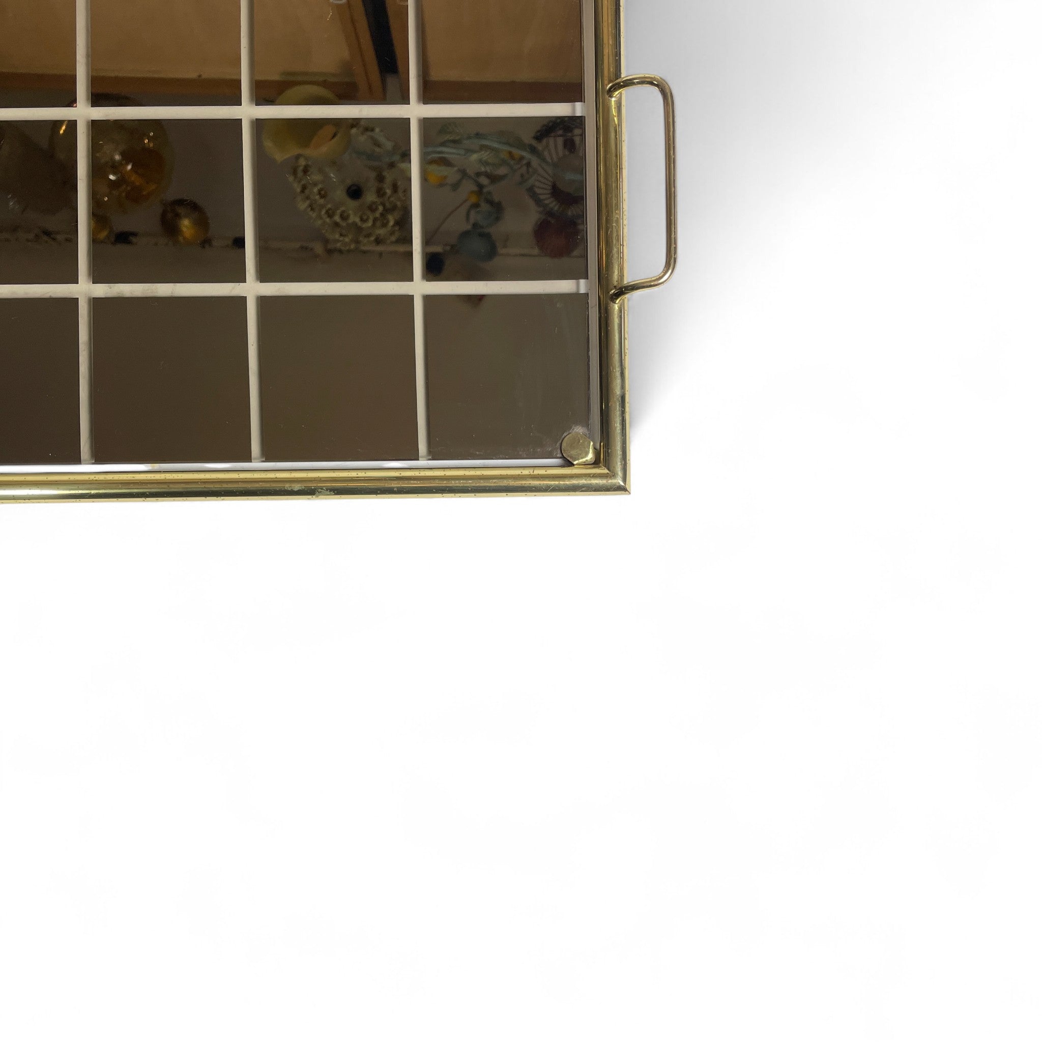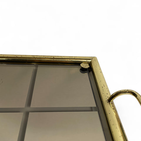 Decorative 1970's Italian tray with brass frame and decorative glass base. Perfect for serving drinks .