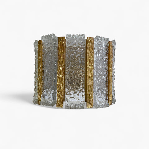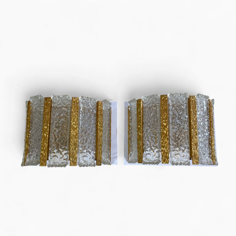 This decorative pair of wall lights with their gilt metal detail are perfect for adding a touch of 1970's style to any interior. The gilt metal details giving this pair of wall lights a glamorous feel.