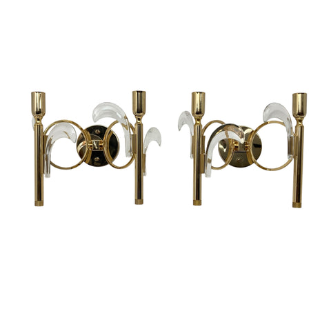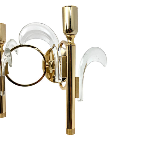 These striking wall lights feature a bright gold frame with Murano glass 'wings' set on a circular ring design. (two pairs available)