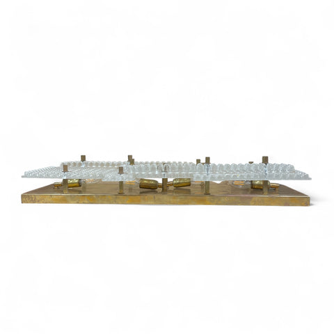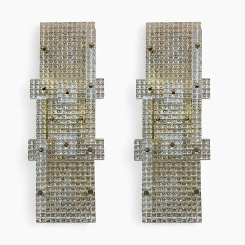 This impressive pair of lamps are perfect for adding some period style to your interior. The abstract textured glass panels offset on a brass panel with brass details. Extremely impressive and stylish.