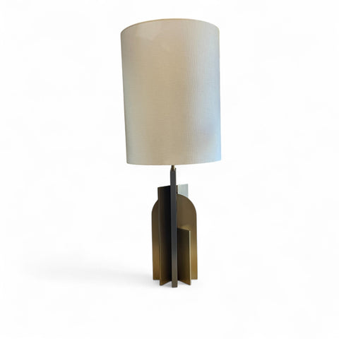 These impressive architectural  lamps are both contemporary and decorative. Original shades available. Sold as pair .