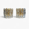 This attractive pair of wall lights date from the 1970's and were designed by J.Kalmar. The gold metal back plates setting off the decorative glass panels perfectly. A very unusual and decorative pair of mid century wall lights. Sold as a pair.